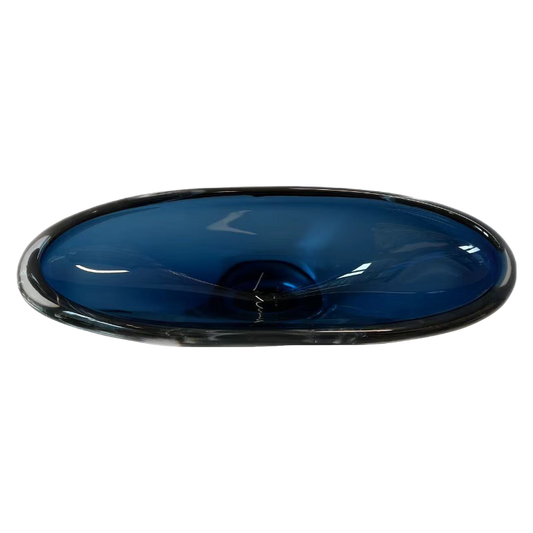 Blue fruit plate handmade hand blown crafted heavy colored glaze glass vase plate 13.5x36cm
