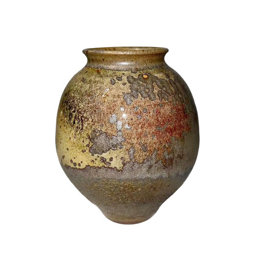 Yellow green brown klin transformed abstract artist handmade ceramic vase (Aromatherapy Bottles & Jars) 13.5x10cm