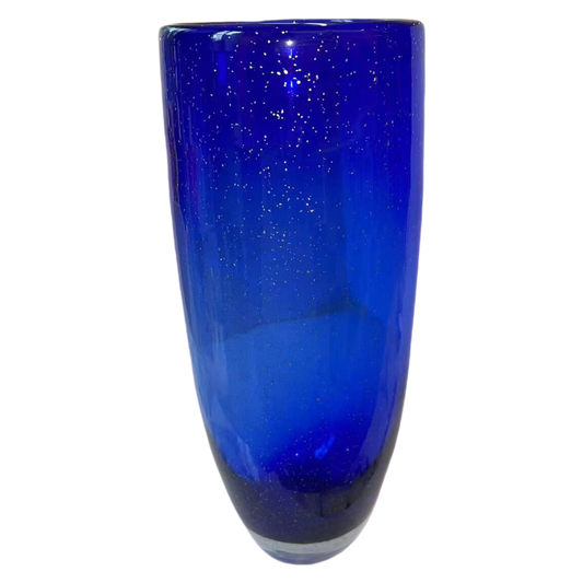Yves Klein blue handmade hand blown Sprinkle Gold open mouth glass vase 33.5x15.5cm