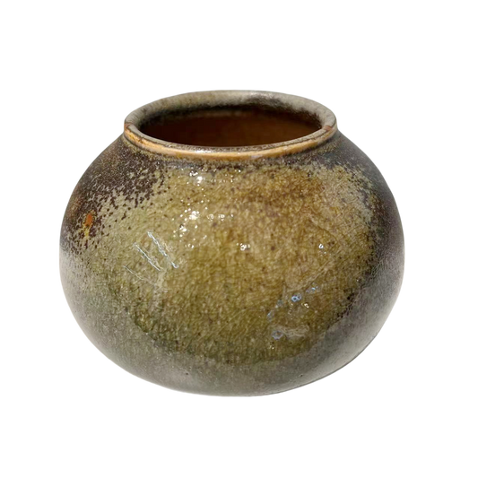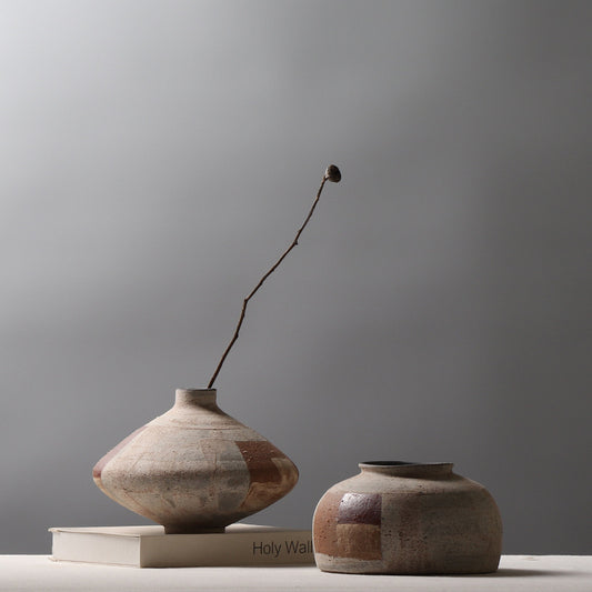 Brown coarse pottery art rustic wabi-sabi style zen art artist handmade scupltural ceramic vase 16.3x22.2cm