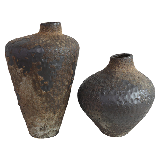 Brown and black rustic wabi-sabi style artist handmade scupltural ceramic vase (The Left 1pc) 26x34cm