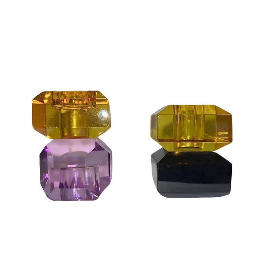Golden color purple black crystal candle stand 2 pcs 8x5cm + 6.5x5cm