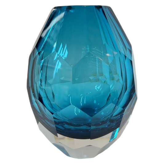 Blue crystal carved craft heavy handmade hand blown glass vase 17.5x12cm