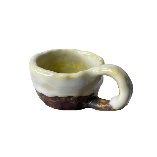 White Shino ware 志野焼, Shino-yaki klin transformed abstract artist round handmade ceramic tea cup 6.5x7.5cm