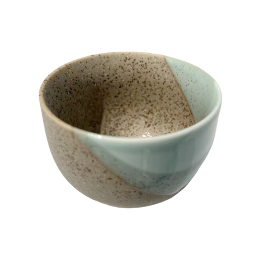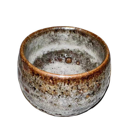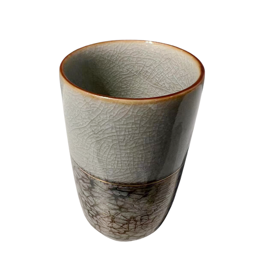 Grey Shino ware 志野焼, Shino-yaki klin transformed abstract artist round handmade ceramic tea cup 6.5x7.5cm