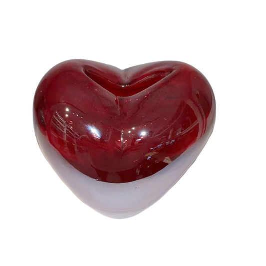 Red heart shape handmade hand blown colored glaze glass vase 16x15cm