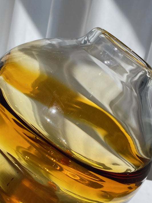 Gold abstract handmade hand blown gradient heavy colored glaze glass vase 22x22cm