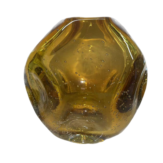 Gold Irregular ball shape Bubble detail handmade hand blown colored glaze glass vase 19x18cm