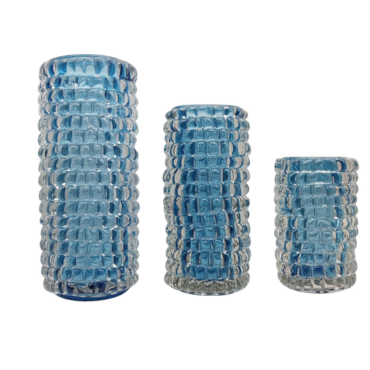 Blue bubble detail art heavy colored handmade hand blown glaze glass vase - Tall 27.5x12.5cm