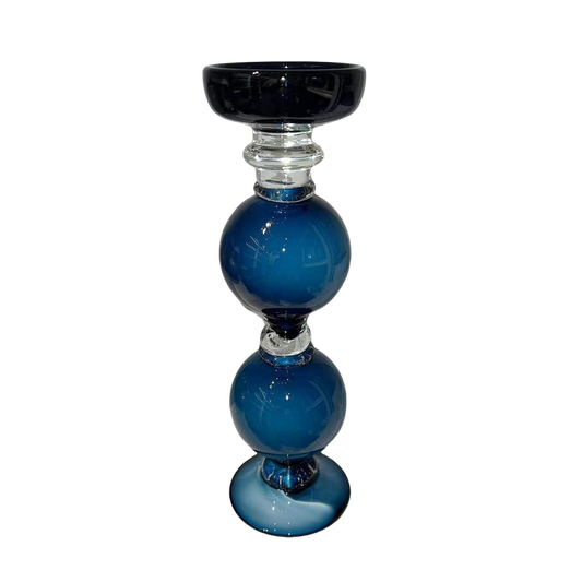 Blue handmade hand blown heavy colored glaze glass candle stand 33.5x10.5cm