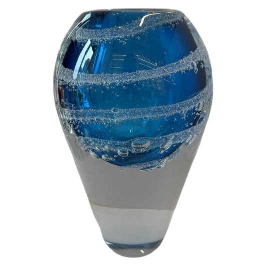 Blue handmade hand blown Artist colored glaze heavy glass vase - Medium 23.5x14cm