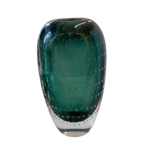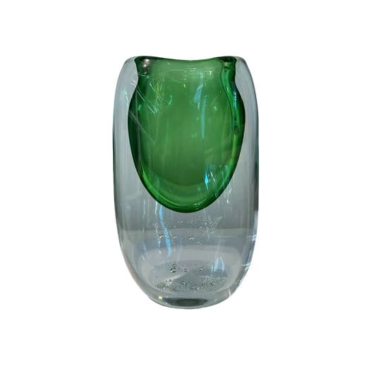 Green Blue and Bubble Transparent handmade hand blown Artist Oval heavy colored glaze glass vase 28.5x16cm